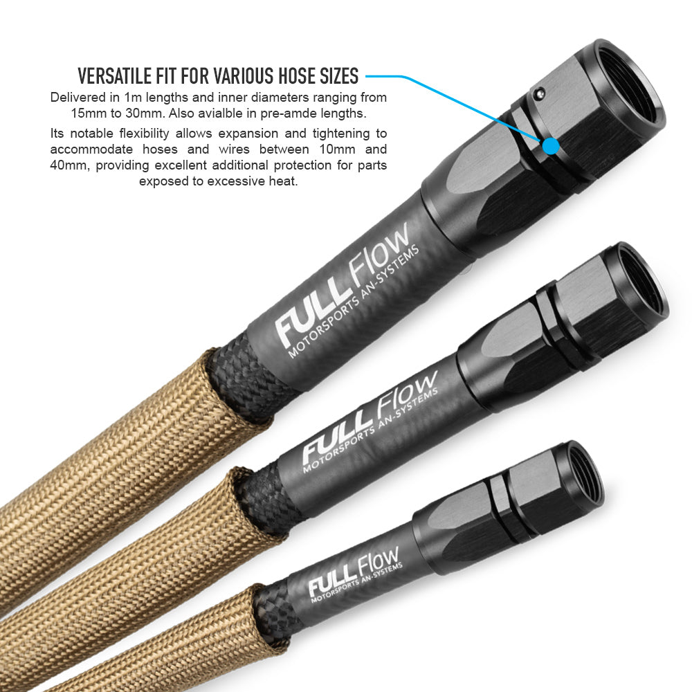 The sleeves are made of pure lava rock fiber, resistant to really high temperatures, and much more efficient than traditional heat protection with the same thickness. Thanks to its high flexibility it is easy to expand and retract with as much as +/- 25% of its internal diameter. Extremely easy to mount around your fittings, hoses, adapters, and much more.