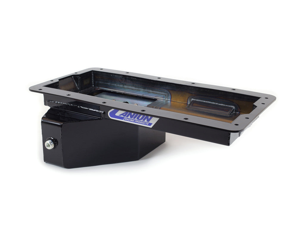 This 15-734 Ford 5.0 Coyote oil pan is designed for 96-04 and 05-12 Mustangs being used in road racing or street/strip applications. Our laser cut rail provides a strong, easy to seal surface. It's rear T sump design offers extra capacity without sacrificing ground clearance and includes a diamond shaped road race baffle assembly with four trap doors for great oil control under heavy driving conditions.