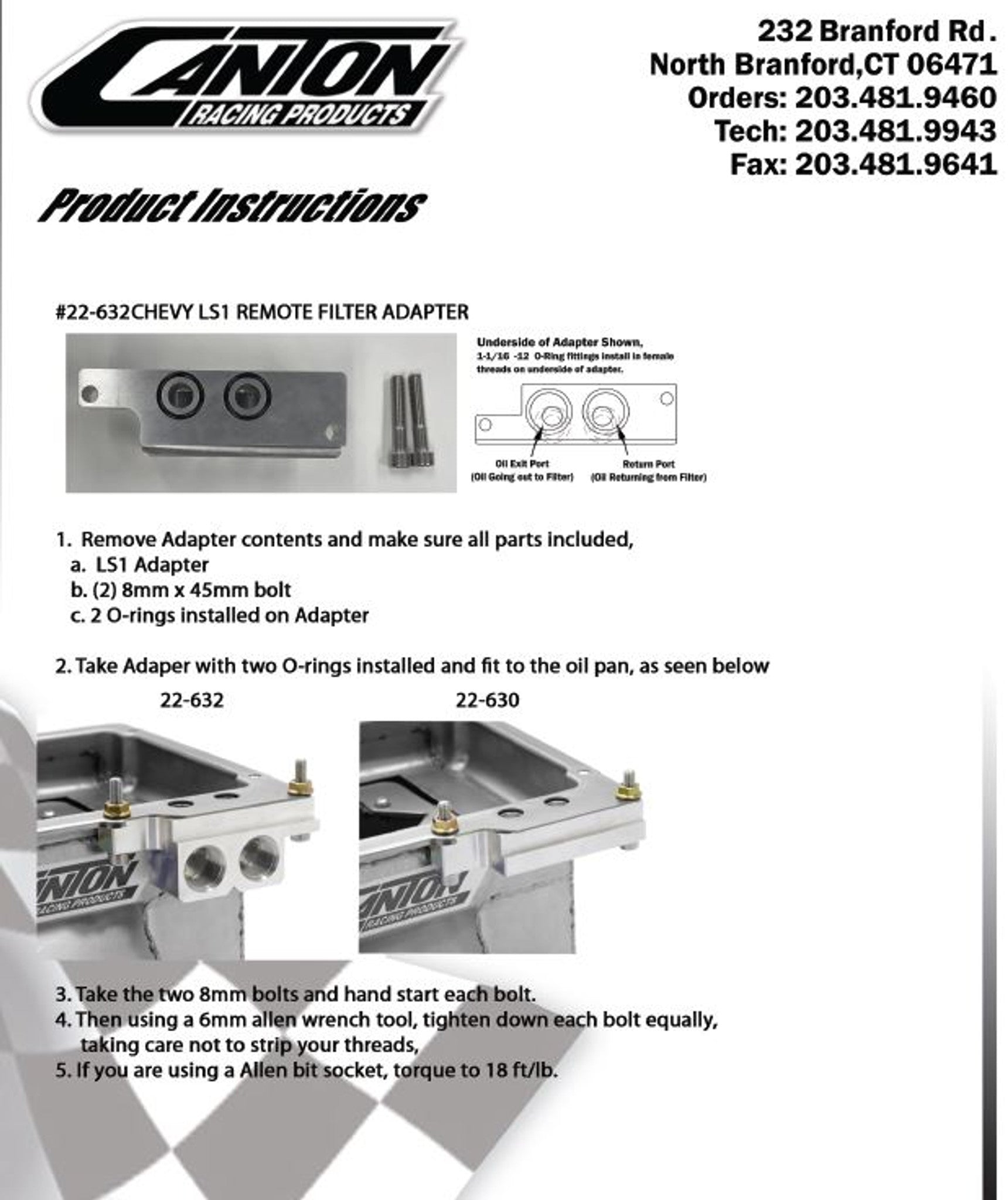 This billet aluminum adapter is designed to install under the pan rail of our LS1 pans and provide inlet and outlet ports for installing lines to a remote oil filter. Adapter features o-ring seals between the pan and the adapter and 1-1/16" -12 AN oil inlet and outlet ports.