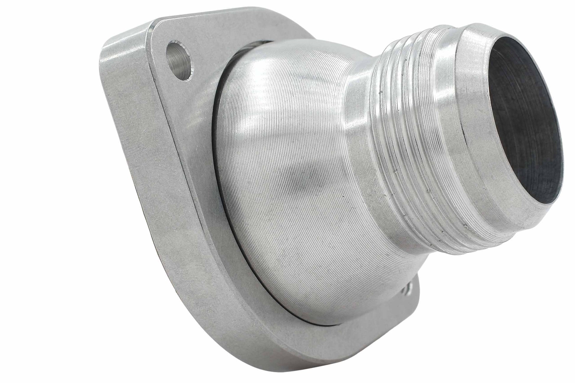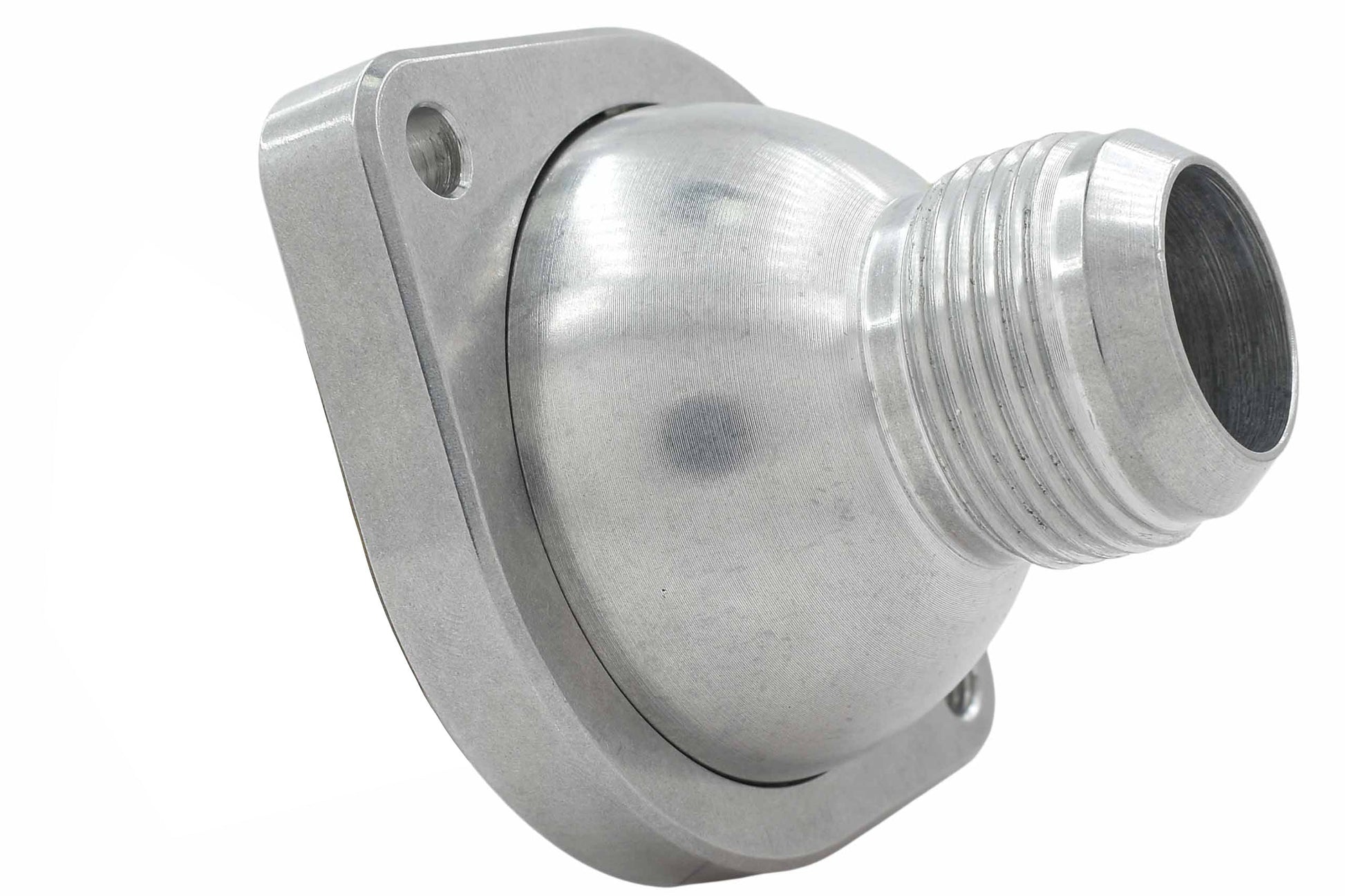 - This thermostat housing converts water pump inlet to a -16AN male fitting for more durable, high pressure hoses